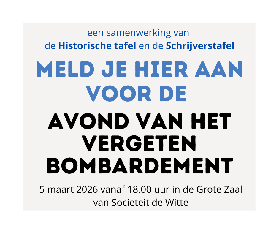 Op donderdag 5 maart a.s. vertellen Dirk Gunther Mohr en Jasmijn Derckx over het bombardement op Bezuidenhout. Jasmijn zal deze avond inleiden.